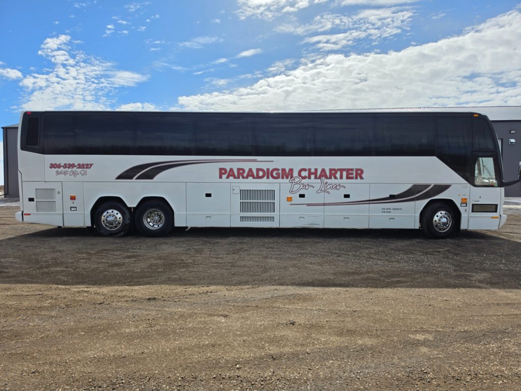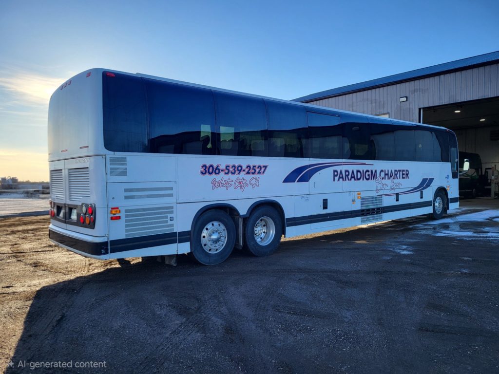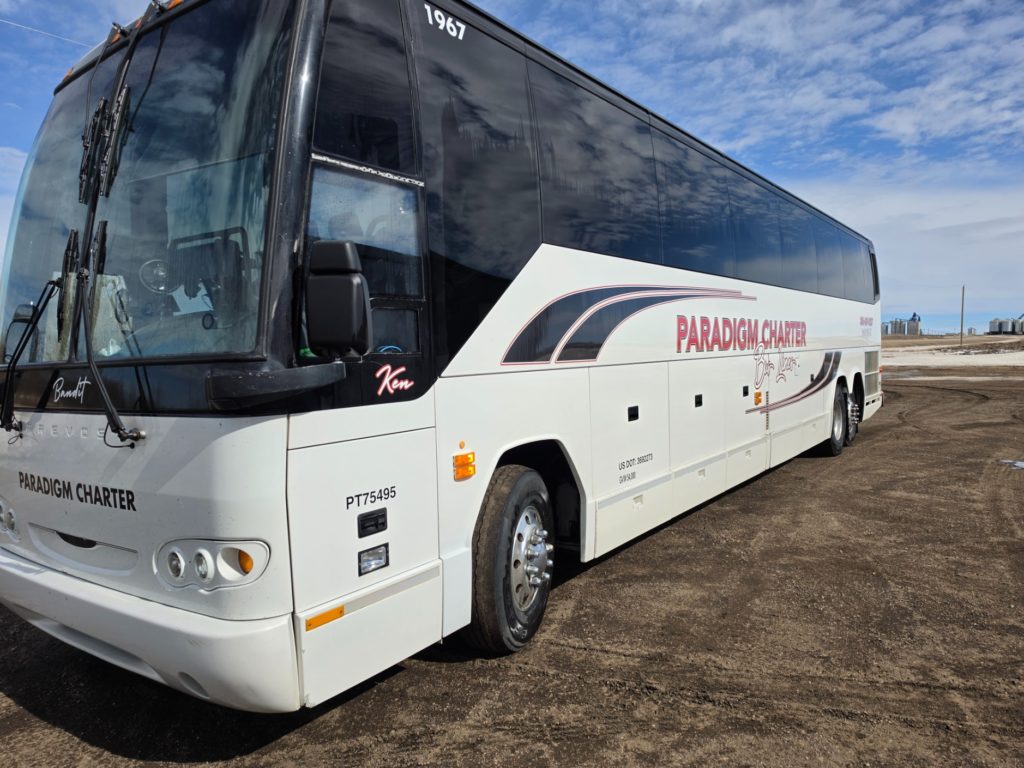 Dependable, spacious, and built for the road, “Benchwarmer” is designed to comfortably accommodate up to 56 passengers. With its clean white exterior and practical interior layout, this coach is a strong, reliable option for moving larger groups efficiently.