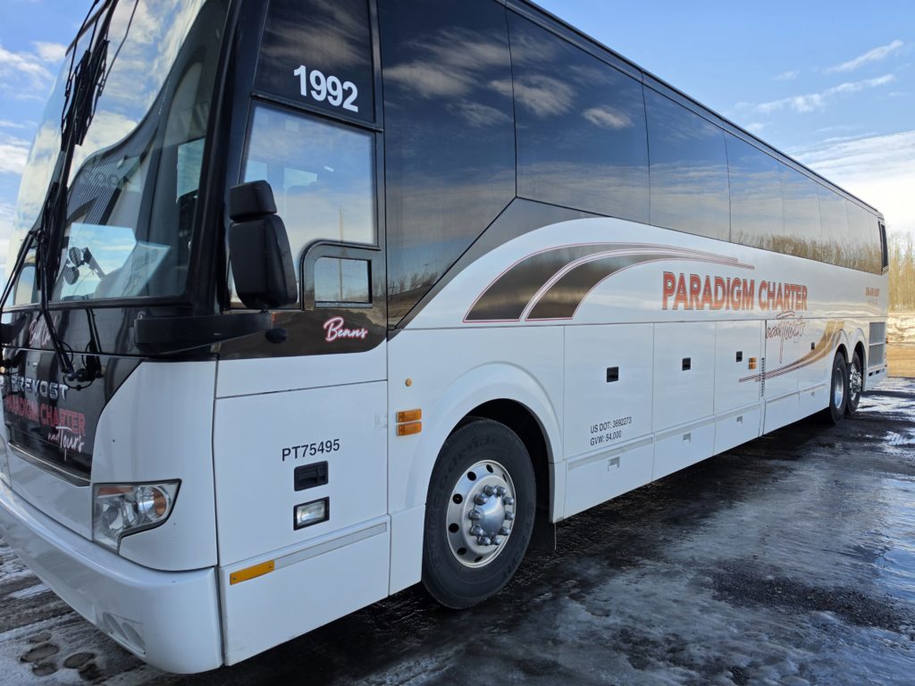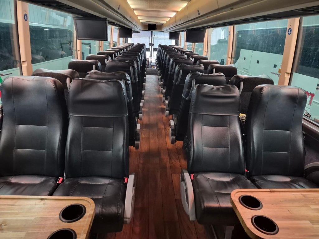Travel in comfort, space, and reliability with Beast, our Executive Class Prevost H3-45. Designed for smaller groups without compromising on amenities, this 36-passenger coach offers a premium travel experience with extra legroom, making longer trips more enjoyable for every passenger.