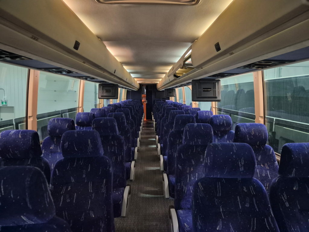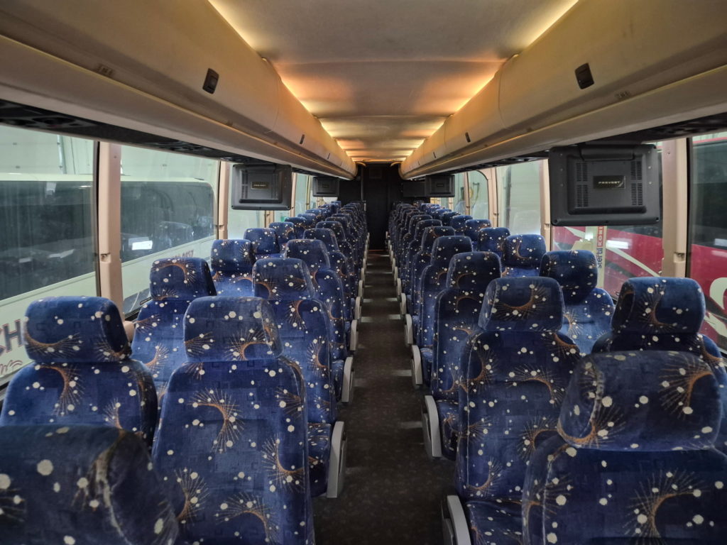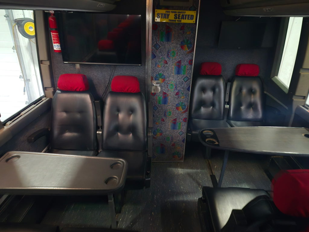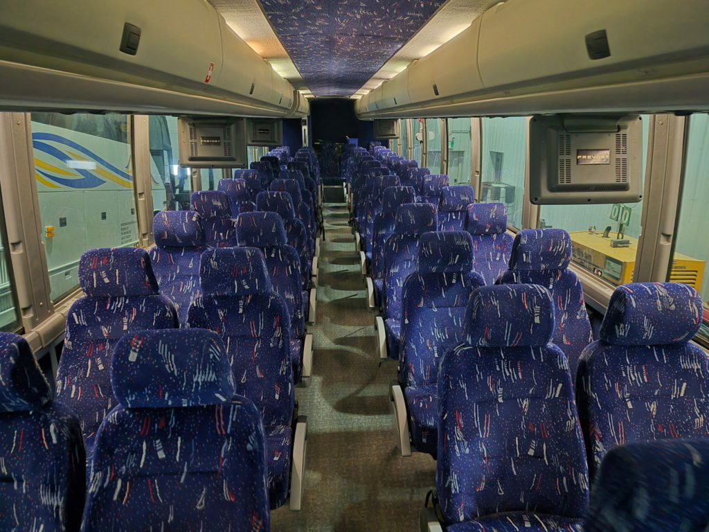 Equipped with comfortable cloth seating, “Benchwarmer” offers a relaxed and functional travel experience while still benefiting from the Volvo S9700 series’ reputation for a smooth, quiet ride and modern design. It’s a great balance of comfort and practicality, making it well-suited for a wide range of trips.