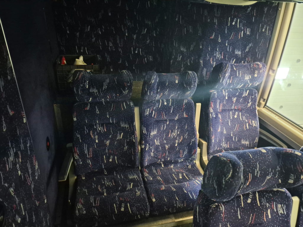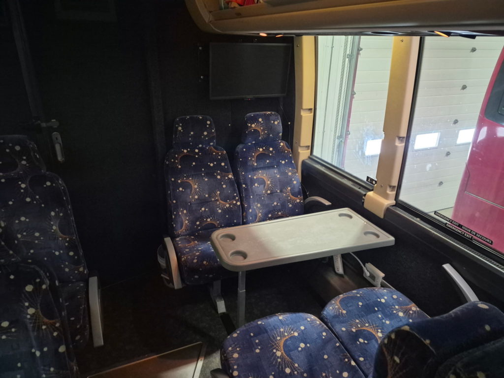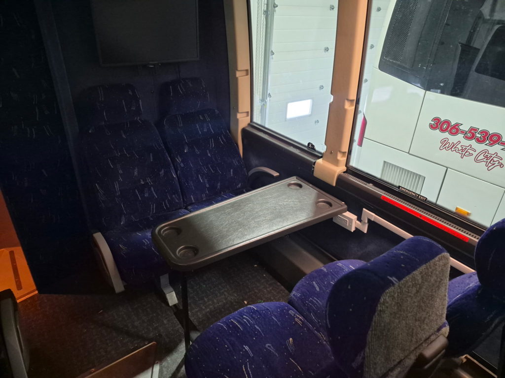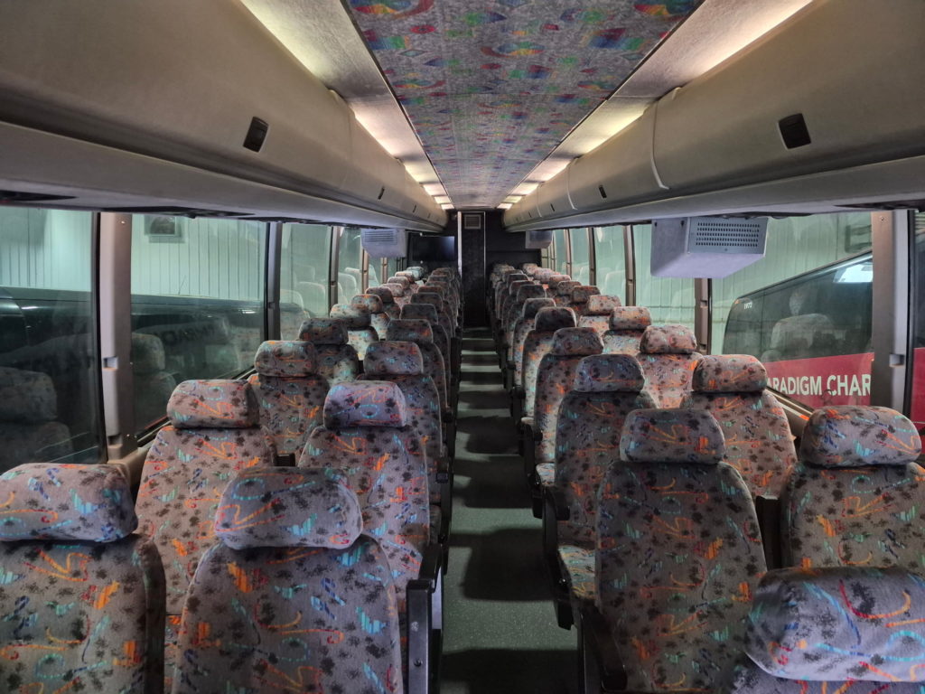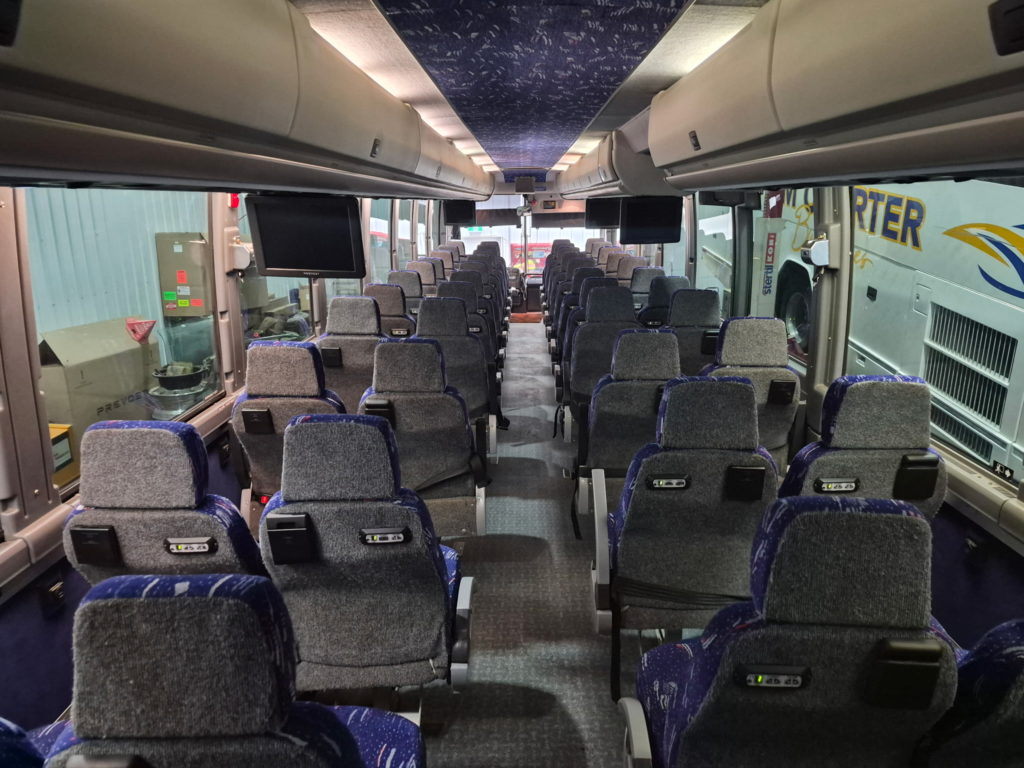 Equipped with comfortable cloth seating, “Benchwarmer” offers a relaxed and functional travel experience while still benefiting from the Volvo S9700 series’ reputation for a smooth, quiet ride and modern design. It’s a great balance of comfort and practicality, making it well-suited for a wide range of trips.