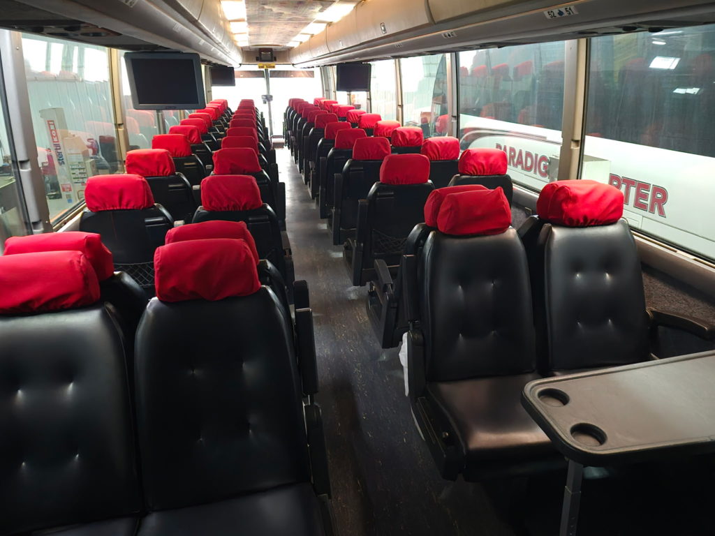 At Paradigm, we prioritize your comfort and convenience. That’s why our Prevost H3-45 comes equipped with a well-maintained washroom facility, providing you with the utmost ease during your travels. Stay connected to the world beyond with our complimentary Wi-Fi service and never miss an important update or email. Moreover, we understand the necessity of keeping your electronic devices charged, which is why our charter bus offers 110-volt plugs and/or USB ports for your conveniences.